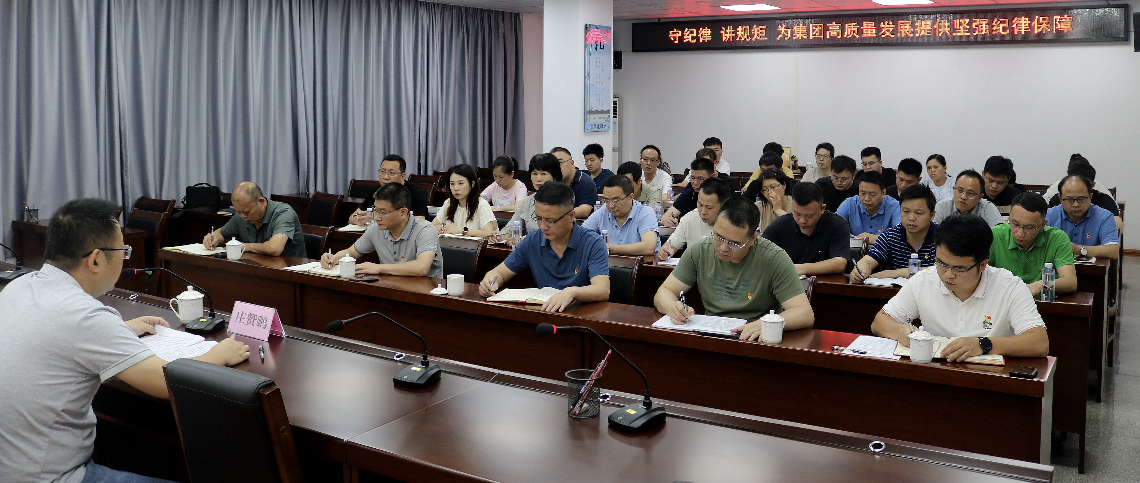 莊贊鵬從準(zhǔn)確把握《中國共產(chǎn)黨紀(jì)律處分條例》學(xué)習(xí)重點(diǎn)、嚴(yán)格對照“六項(xiàng)紀(jì)律”抓好貫徹執(zhí)行兩個(gè)大方面作出了深入淺出的輔導(dǎo)。在貫徹執(zhí)行方面,他提出六個(gè)要求:一是要嚴(yán)守政治紀(jì)律,不斷提高政治能力;二是要嚴(yán)守組織紀(jì)律,始終做到聽黨指揮;三是要嚴(yán)守廉潔紀(jì)律,筑牢拒腐防變防線;四是要嚴(yán)守群眾紀(jì)律,走好黨的群眾路線;五是要嚴(yán)守工作紀(jì)律,認(rèn)真規(guī)范履職用權(quán);六是要嚴(yán)守生活紀(jì)律,加強(qiáng)思想道德修養(yǎng)。