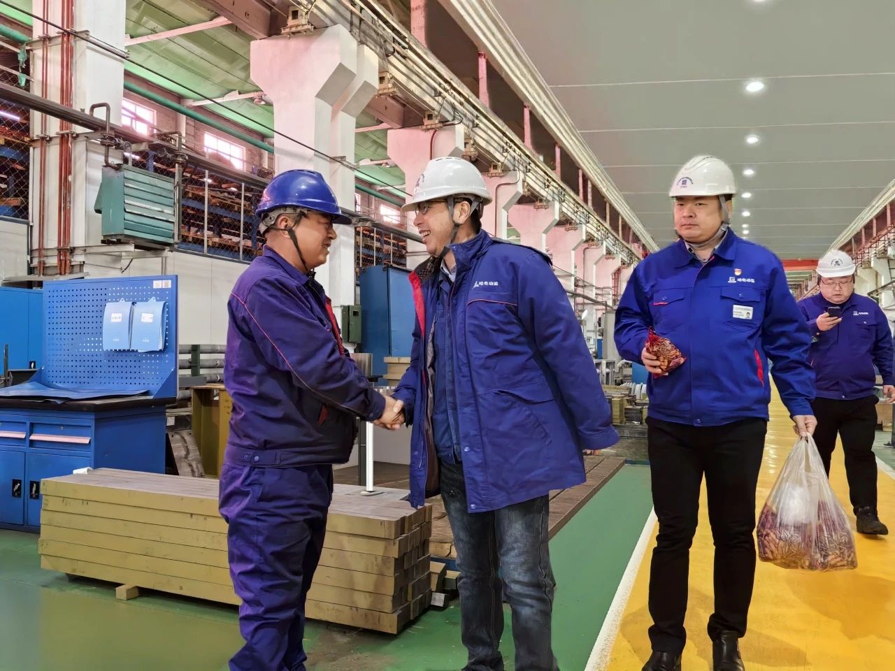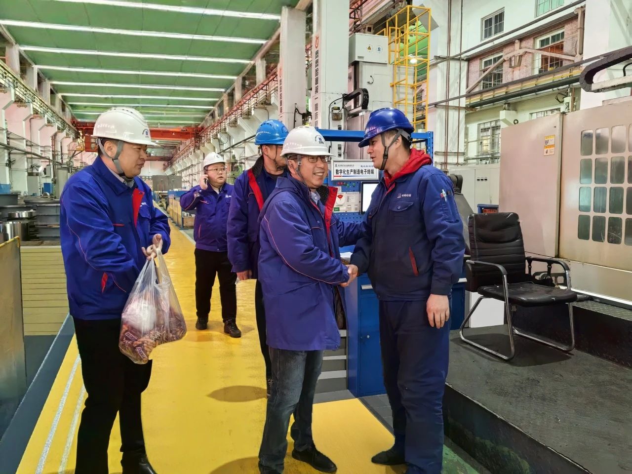 農歷正月初三,哈爾濱電氣動力裝備有限公司黨委書記、董事長李夢啟帶隊前往各制造部生產現(xiàn)場,看望慰問春節(jié)期間堅守崗位的一線職工,檢查節(jié)日安全生產落實情況,并向大家送上新春祝福。黨群工作部負責人陪同慰問。