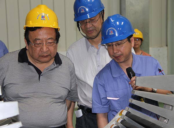 6月11日上午,國家發(fā)改委黨組副書記、副主任朱之鑫一行在黑龍江省政府秘書長李顯剛、省發(fā)改委主任王冬光及哈電集團副總經理苗立杰等領導的陪同下參觀了公司新區(qū)廠房。公司副總經理孫榮才陪同參觀并向來賓介紹了我公司生產經營及項目研發(fā)情況。朱之鑫指出,要堅定信心、奮力拼搏,加速屏蔽主泵電機“國產化”進程。