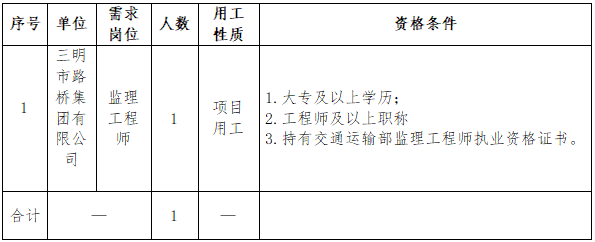 (一)公告。招聘崗位、人數(shù)、任職資格等信息在 “三明市路橋集團(tuán)”官網(wǎng)(jcc-ic.com)向社會(huì)統(tǒng)一公告。