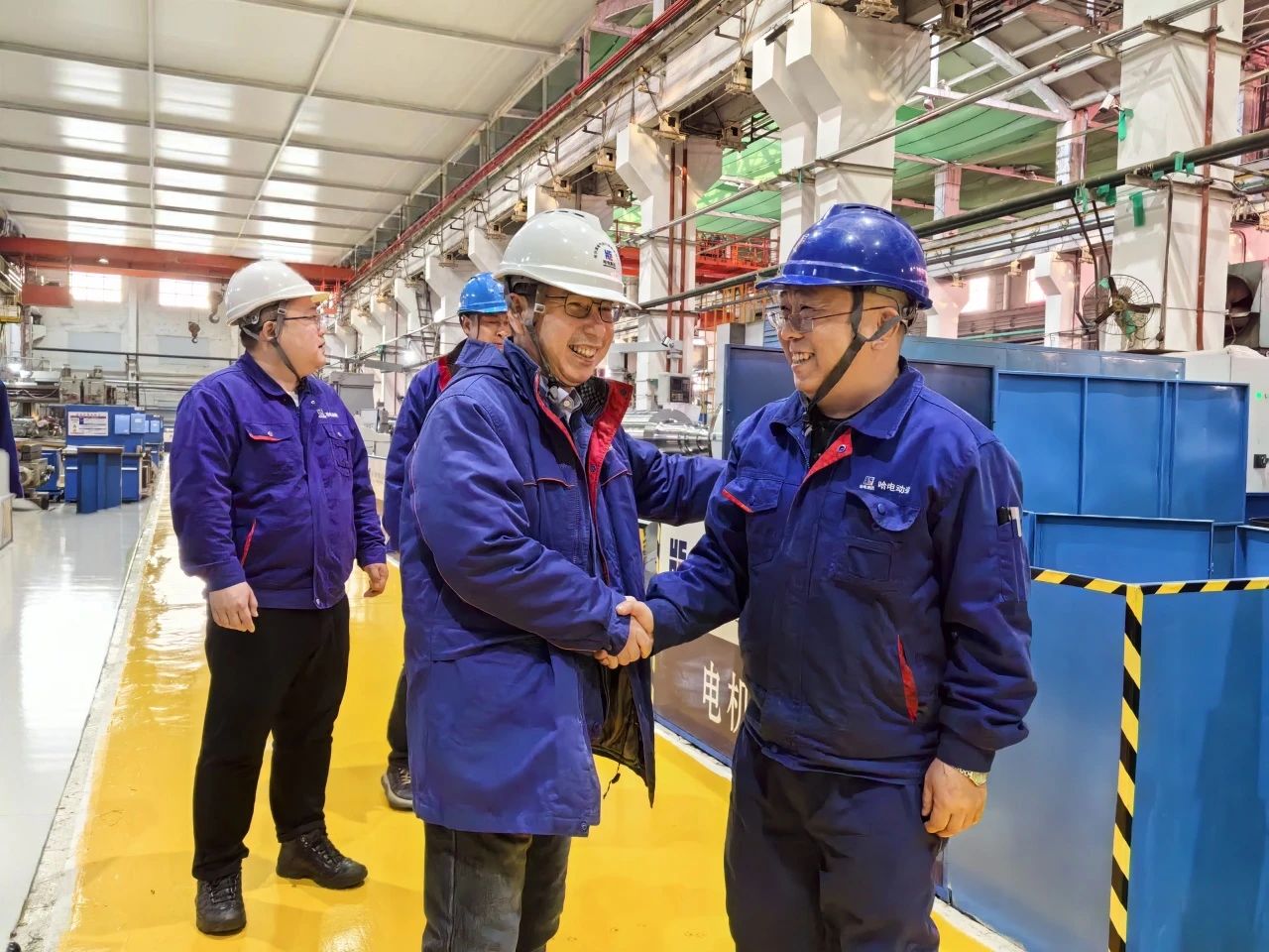 農歷正月初三,哈爾濱電氣動力裝備有限公司黨委書記、董事長李夢啟帶隊前往各制造部生產現(xiàn)場,看望慰問春節(jié)期間堅守崗位的一線職工,檢查節(jié)日安全生產落實情況,并向大家送上新春祝福。黨群工作部負責人陪同慰問。
