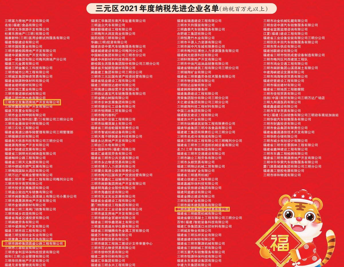 近日,市路橋集團旗下的三明市交發(fā)集團房地產開發(fā)有限公司、三明市路橋集團昌盛公路工程有限公司、三明市路橋集團物資貿易有限公司被中共三元區(qū)委、三元區(qū)人民政府授予“2021年度三元區(qū)納稅先進企業(yè)”榮譽稱號。